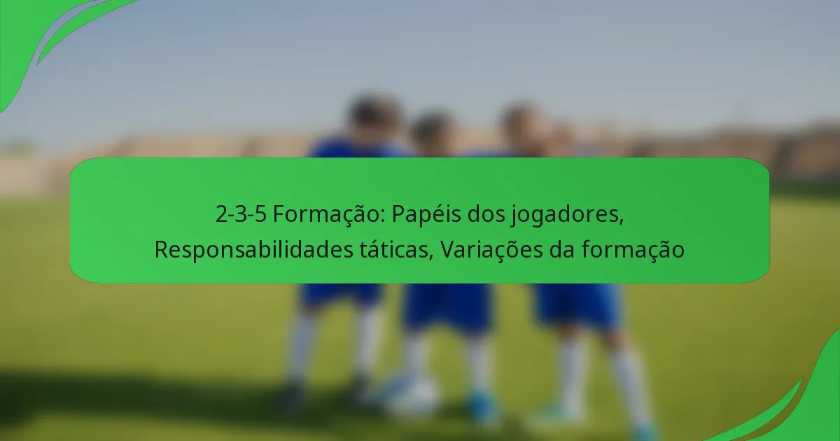A formação 2-3-5 enfatiza um estilo de jogo ofensivo enquanto mantém uma defesa estruturada. As responsabilidades táticas de cada jogador são cruciais para equilibrar os deveres ofensivos e defensivos, garantindo transições eficazes e mantendo a forma da equipa.