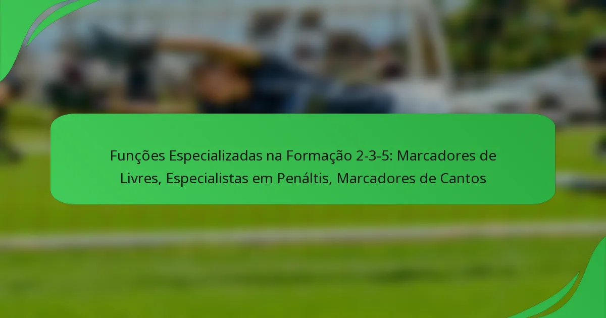 A formação 2-3-5 enfatiza uma estratégia ofensiva forte, dependendo de papéis especializados para maximizar as oportunidades de golo. Compreender os insights táticos por trás dos especialistas em bolas paradas, incluindo executantes de livres, especialistas em penáltis e cobradores de cantos, é crucial para aproveitar esta formação de forma eficaz.